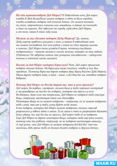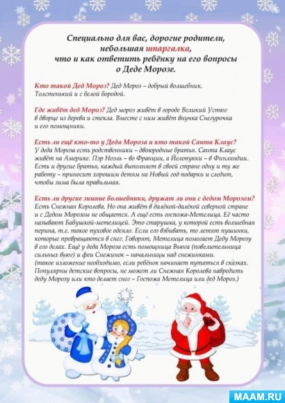 Шпаргалка для родителей "Дед Мороз"
